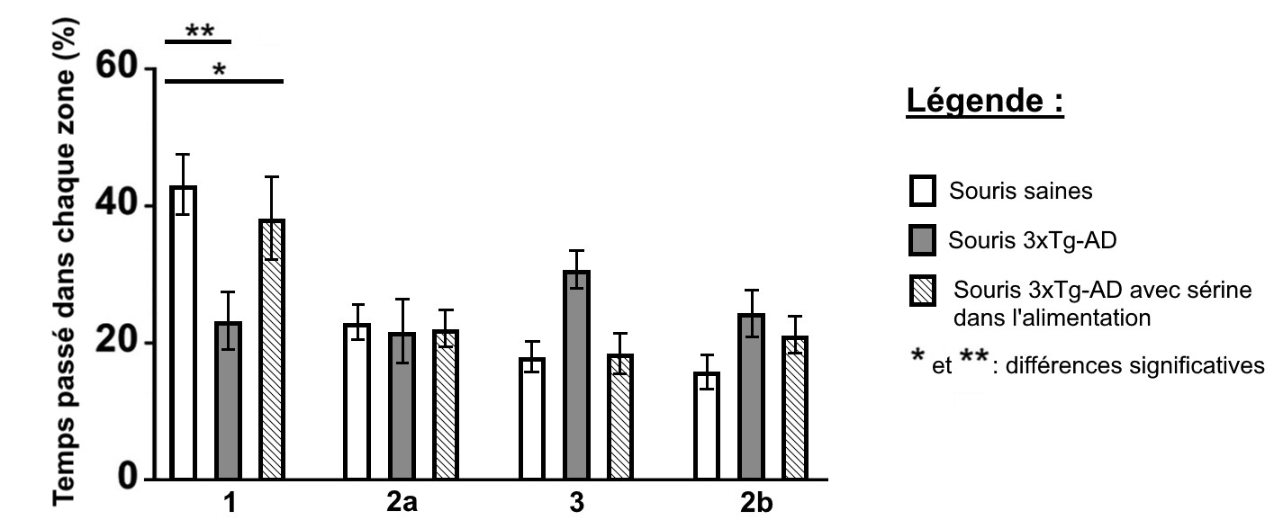 Les résultats obtenus sont exprimés en comparaison d’une valeur de référence (obtenue chez des souris sauvages saines sans ajout de sérine : 100%).