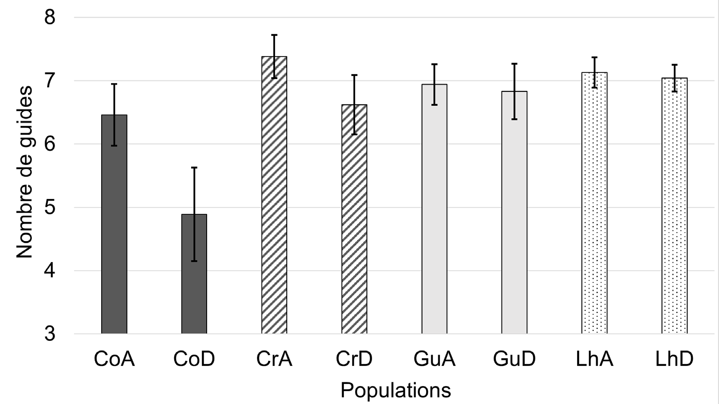 Document 2.b : nombre de guides par fleur pour les différentes populations étudiées