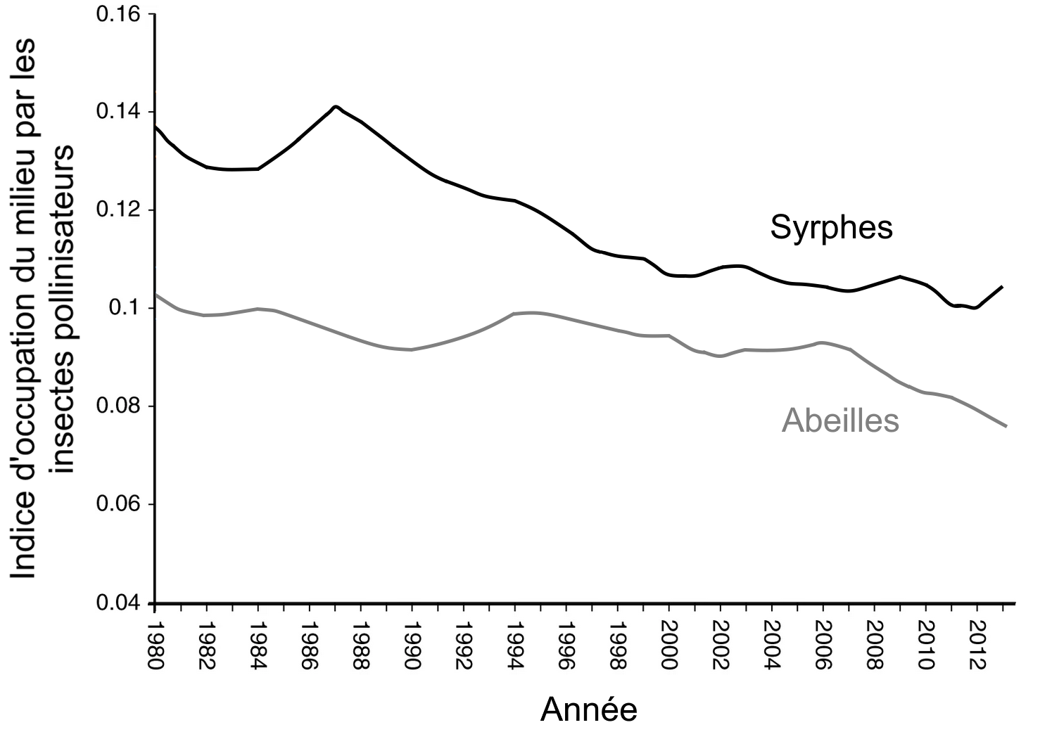 Les syrphes et les abeilles tout comme les bourdons sont des insectes pollinisateurs. Les résultats obtenus en Grande-Bretagne peuvent être appliqués au Bassin Parisien.