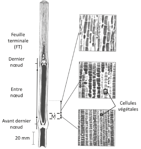 Document 2 : caractéristiques du dernier entrenœud de la variété C9285 d’Oryza sativa
