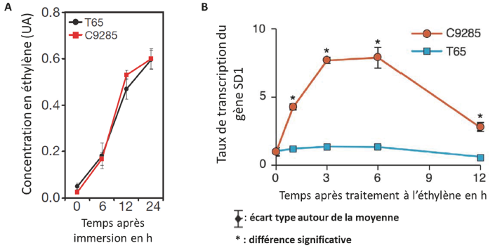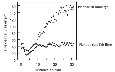 On compare deux variétés de riz dont l’une, C9285, est résistante à l’immersion. On cultive ces 2 variétés dans un milieu recouvert d’eau pendant 7 jours.