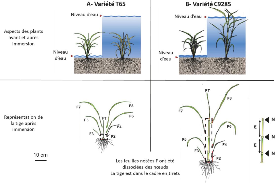 | Expliquer les mécanismes qui permettent à certaines variétés de riz de résister à une immersion. |