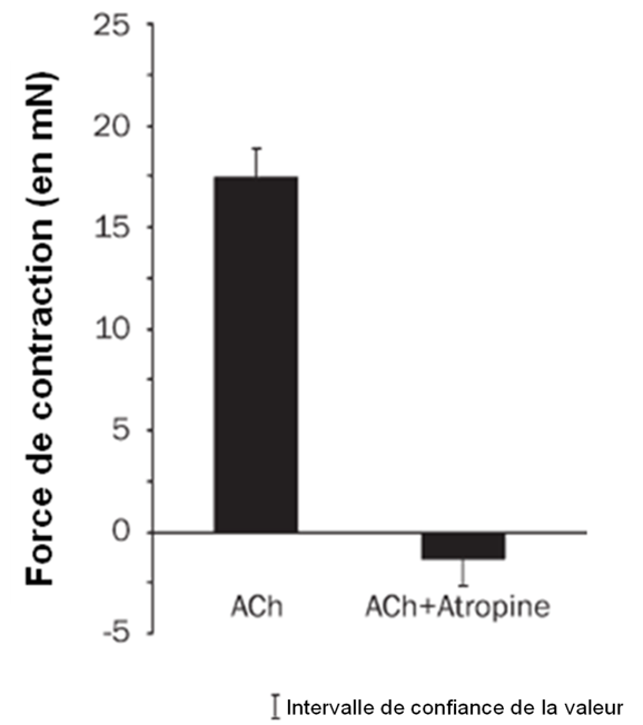 On mesure la force de contraction d’un muscle respiratoire avec ou sans injection d’atropine. Les résultats sont présentés ci-dessous.